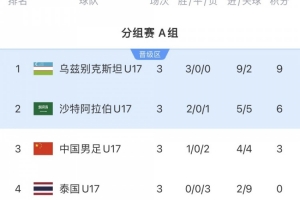 本届U17亚洲杯小组赛中,中国U17国少首战1-2不敌东道主沙特,次轮同样以1-2不敌乌兹别克斯坦,从而两连败提前出局。
